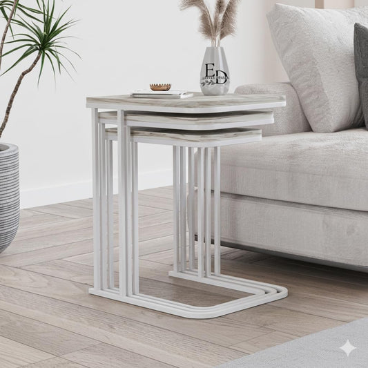 Tables d’appoint gigognes Lyon – Lot de 3 – Marbre blanc – Métal blanc