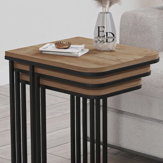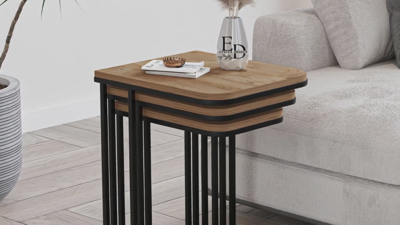 Tables d’appoint gigognes Lyon – Lot de 3 – Bois clair – Métal noir