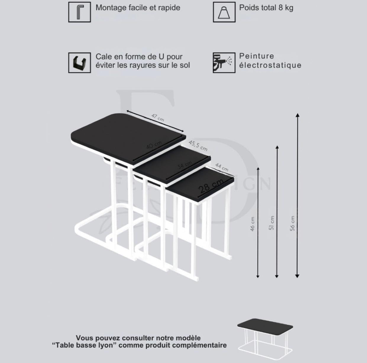 tables d’appoint gigognes rondes avec structure en métal NOIR UNIQUEMENT,