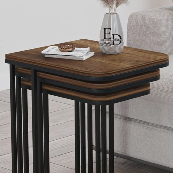Tables d’appoint gigognes Lyon – Lot de 3 – Bois foncé – Métal noir