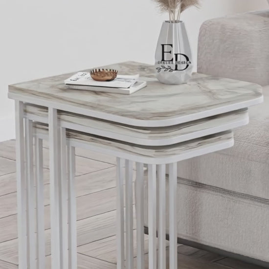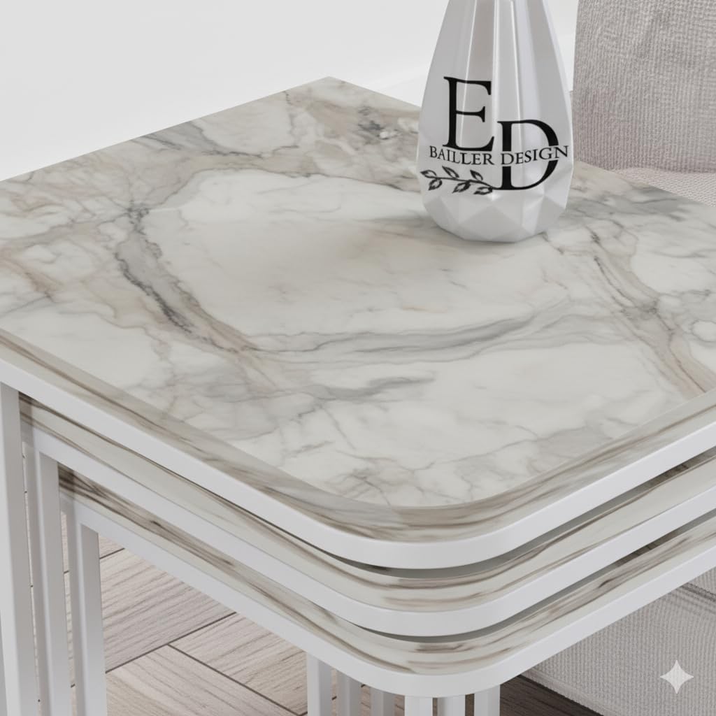 Tables d’appoint gigognes Lyon – Lot de 3 – Marbre blanc – Métal blanc