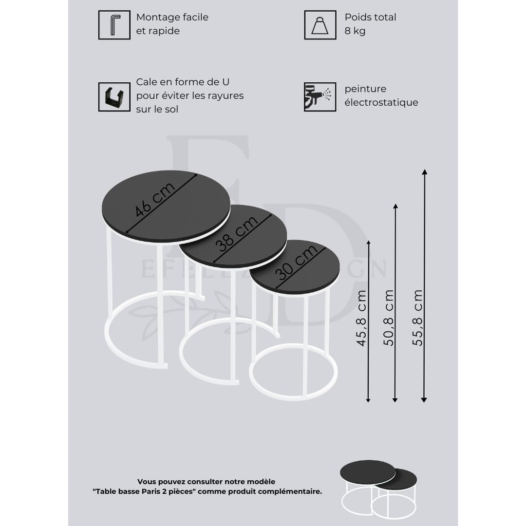 tables d’appoint gigognes rondes avec structure en métal NOIR UNIQUEMENT,